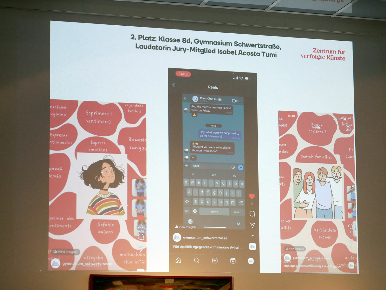 Bereits zum zweiten Mal wurde 2025 ein Schulwettbewerb vom Förderkreis #Wir_erinnern_Wir_gestalten des Zentrums für verfolgte Künste und der Stadt Solingen ausgelobt. Nachdem es im ersten Wettbewerb um das Thema "Fake News" ging, lautete das diesjährige Thema „Freiheit - Ohne Angst verschieden sein: Was bedeutet das für dich?“. Der Wettbewerb richtete sich an Schüler:innen aller weiterführenden Solinger Schulen.